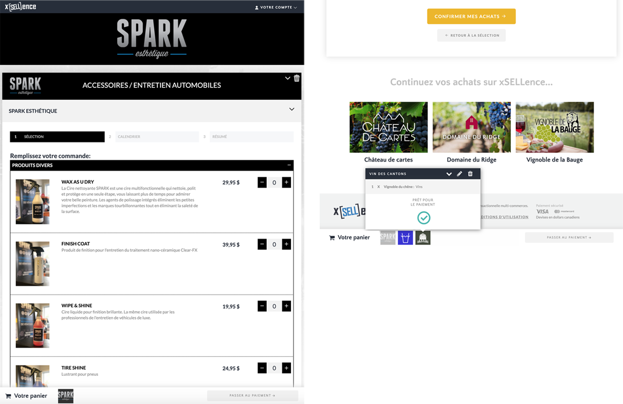La plateforme xSELLence offre aux commerces de détail un module transactionnel aux couleurs et logo de leur entreprise afin d’y intégrer facilement une liste de produits à vendre en ligne.